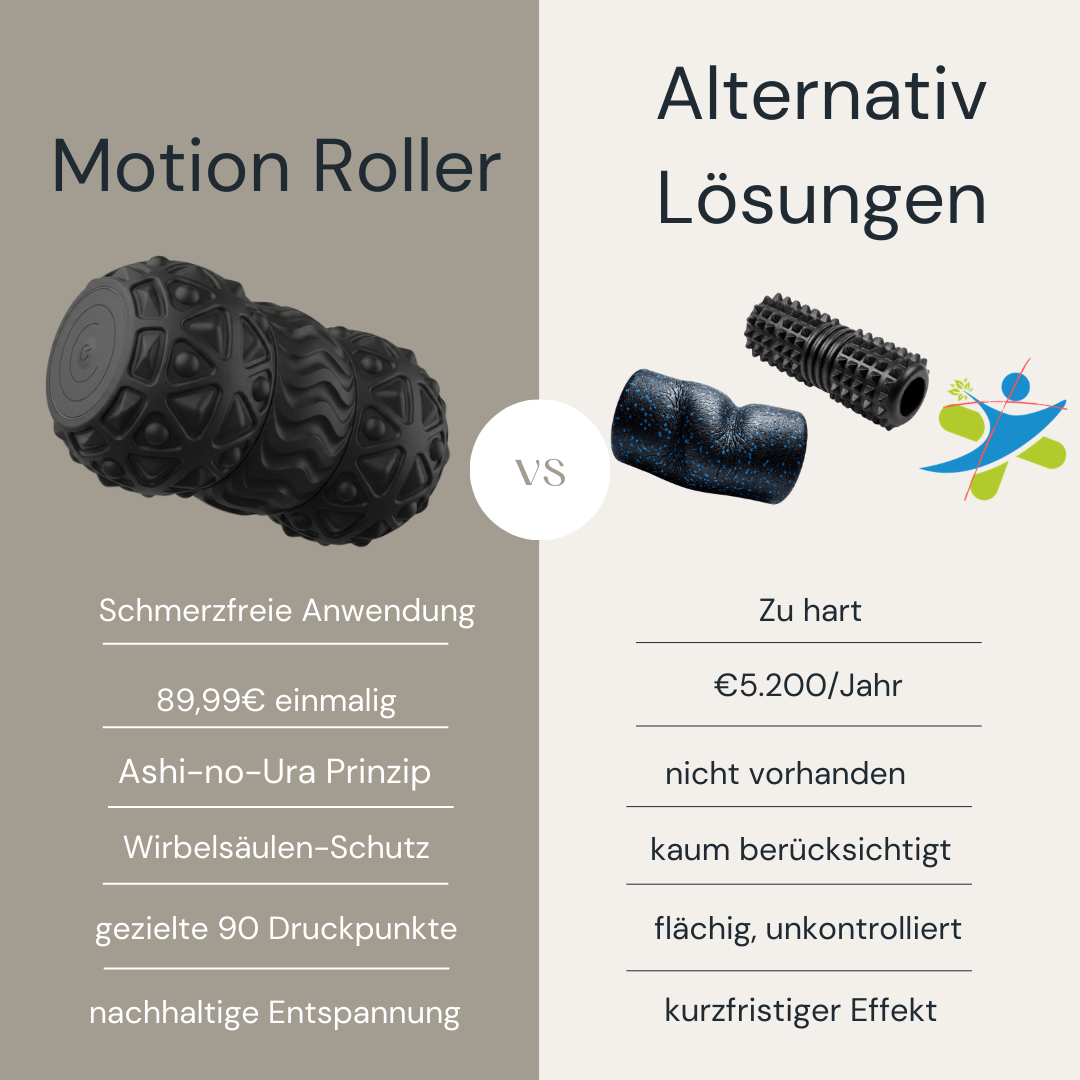 Der Motion Roller kombiniert dieses Prinzip mit über 90 präzisen Druckflächen, die genau diese Bereiche unter deinem Fuß treffen.